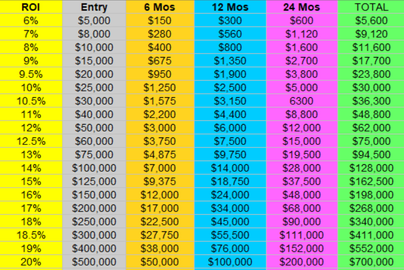 A. YES we do! The value of your deposit determines your interest. Larger deposits earn greater RETURNS... up to 35% and more.